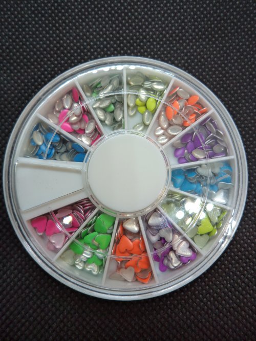 Roda com decoração para unhas de várias cores.
